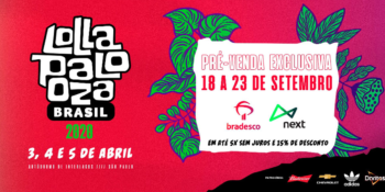 A venda de ingressos para o Lollapalooza 2020 está prestes a começar! Através da conta oficial do festival no Twitter, a organização anunciou que clientes Bradesco e Next terão acesso a pré-venda a partir do dia 18 de setembro, com 15% de desconto e possibilidade de parcelamento em até 5x sem juros. Após essa data, […]