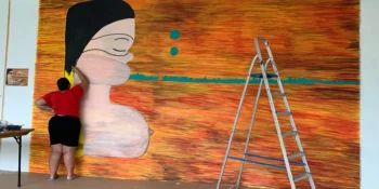 Artista visual indígena Sãnipã cria mural inspirado em mitologia Apurinã no Instituto Ling