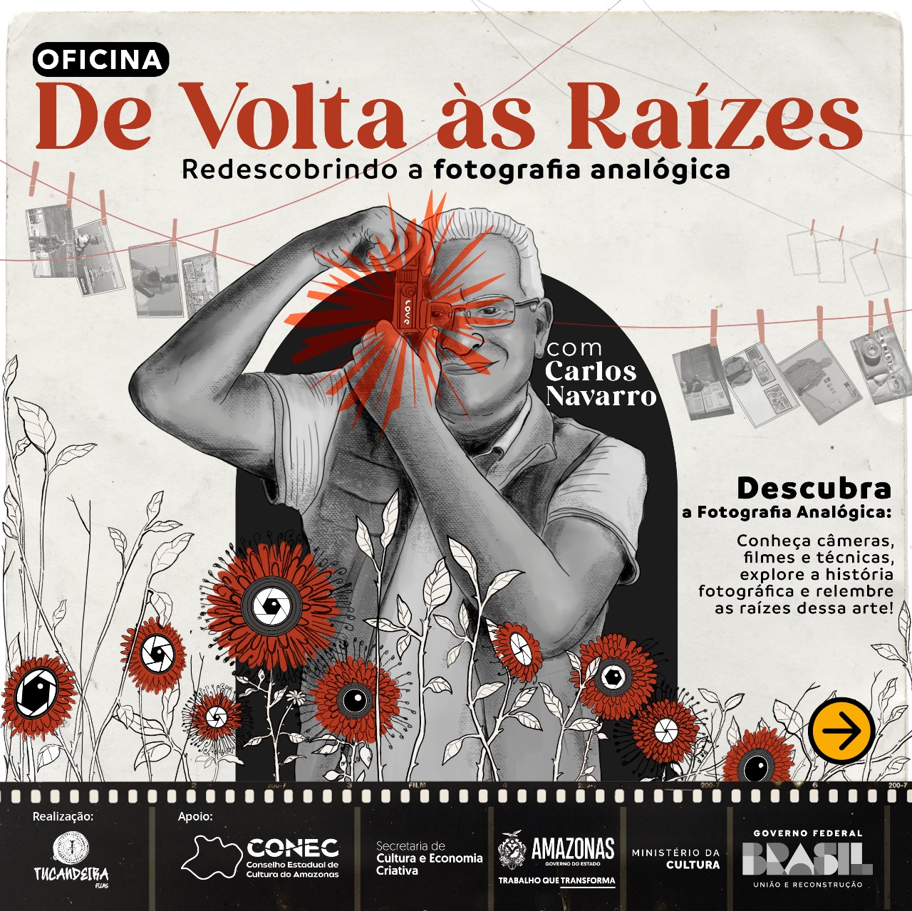 Acontecerá, em Manaus, a oficina “De Volta às Raízes: Redescobrindo a Fotografia Analógica”, com Carlos Navarro Infante, fotógrafo com 57 anos de experiência, que ministrará aulas teóricas e práticas. A iniciativa ocorrerá de 4 a 8 de março, das 14h às 17h, na sede do Ateliê 23, localizado na Rua Tapajós, 166, Centro.