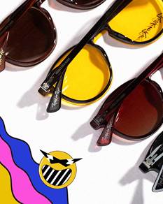 A coleção exclusiva tem detalhes como caveiras, metais, guitarras e padronagens moldados às hastes. Entre os destaques estão os modelos da era glam rock, com óculos retangulares, referência ao estilo do início dos anos 70.