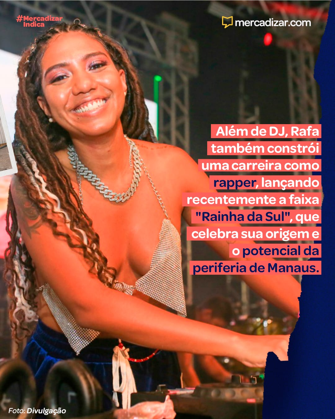 Rafa Militão é uma DJ, rapper e produtora cultural manauara, criada na Zona Sul de Manaus, mais especificamente no bairro Betânia. Ela ganhou destaque nacional por sua participação em eventos importantes como o Passo a Paço e o Rock in Rio 2022. No festival carioca, apresentou-se no espaço VIP da Warner Music, reforçando sua relevância no cenário musical brasileiro. Além de DJ, Rafa também constrói uma carreira como rapper, lançando recentemente a faixa “Rainha da Sul”, que celebra sua origem e o potencial da periferia de Manaus.