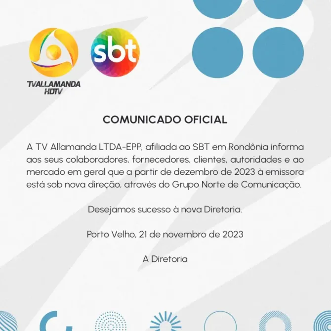O Grupo Norte de Comunicação (GNC) passará a transmitir a programação do SBT na capital e no interior de Rondônia. A novidade se dá após o grupo adquirir a TV Allamanda, sediada em Porto Velho, na manhã desta quarta-feira, 22.