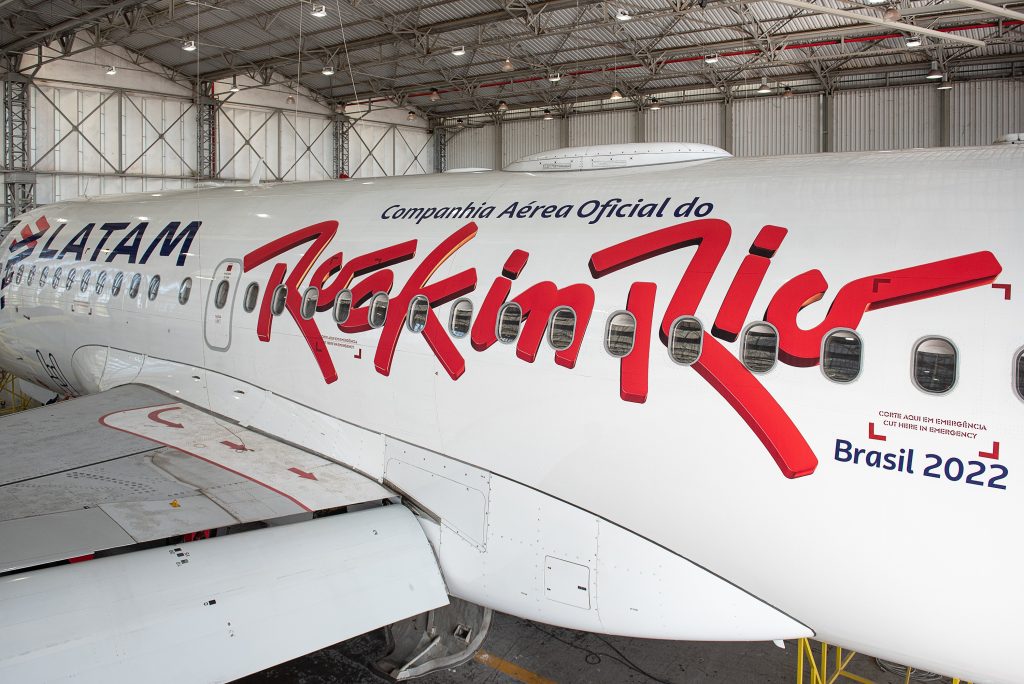 A LATAM Brasil, companhia aérea oficial do Rock in Rio Brasil 2022, começou a operar na noite da última quarta-feira, 4, a primeira aeronave adesivada em homenagem ao festival.