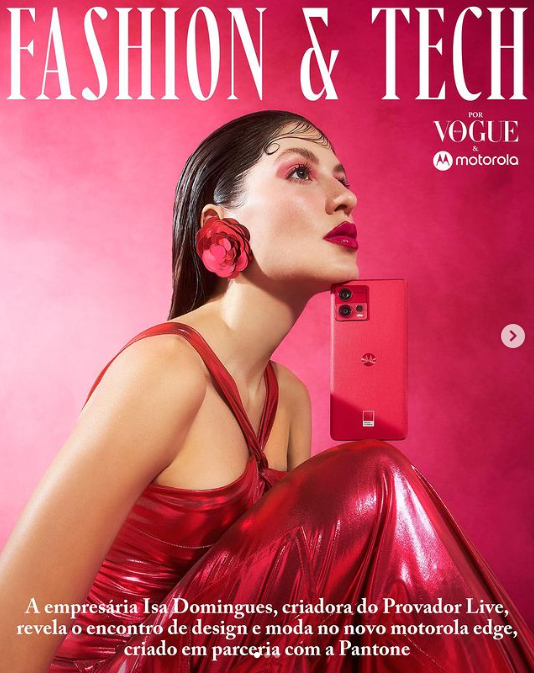 A Motorola e a Vogue, revista conceituada de moda e lifestyle, fecham parceria para destacar a edição especial do Motorola Edge 30 Fusion Viva Magenta, um dos recentes lançamentos da marca, que traz a intersecção perfeita de desempenho e design, e incorpora a cor Pantone do ano de 2023 Viva Magenta com acabamento vegan leather. Na ação especial, o aparelho protagoniza uma capa digital da revista em um shooting estrelado pela influenciadora Isa Domingues.