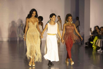 “Fico muito feliz de poder vir para cá trazer a nossa arte, a história que a gente acredita. Falar sobre moda autoral, sobre Brasil, sobre o Amazonas e o pertencimento. Quero agradecer às associações de mulheres indígenas que produziram com a gente por meio do projeto Parentas que Fazem. É sempre muito prazeroso reunir o que a gente constrói no têxtil com as fibras naturais”, agradeceu.