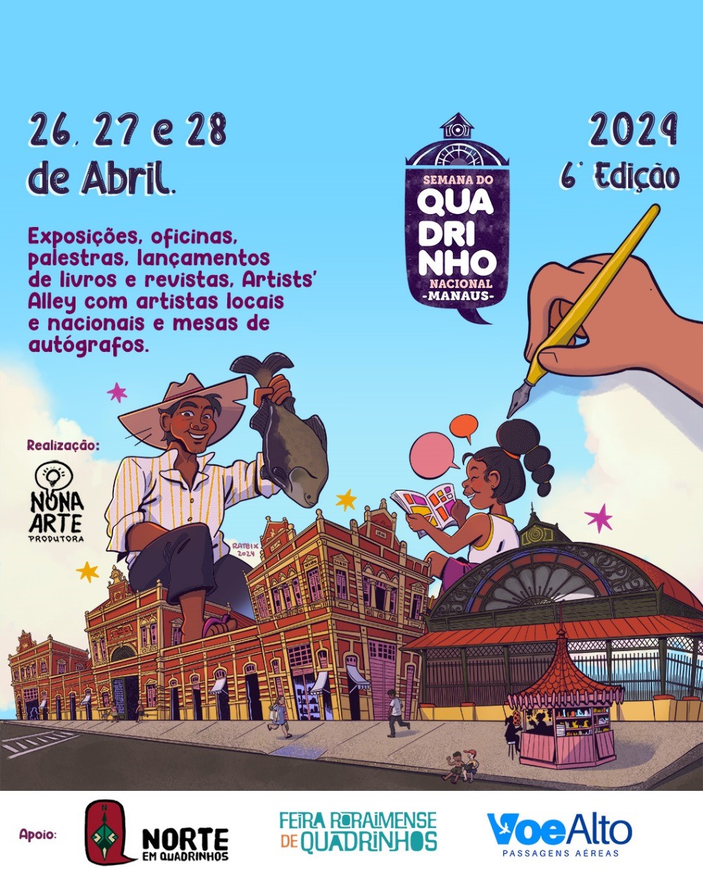 A Semana do Quadrinho Nacional de Manaus retorna em sua sexta edição destacando o talento dos quadrinistas brasileiros, em especial os da região amazônica. O evento que, tradicionalmente acontece no último final de semana de janeiro desde 2019, excepcionalmente esse ano ocorrerá nos dias 26, 27 e 28 de abril. A sexta edição inclui a participação de artistas locais e de todo o Brasil, convidados renomados do mercado nacional, sorteios, oficinas, palestras, exposição inédita, sessão de autógrafos e muito mais sobre o universo das histórias em quadrinhos.