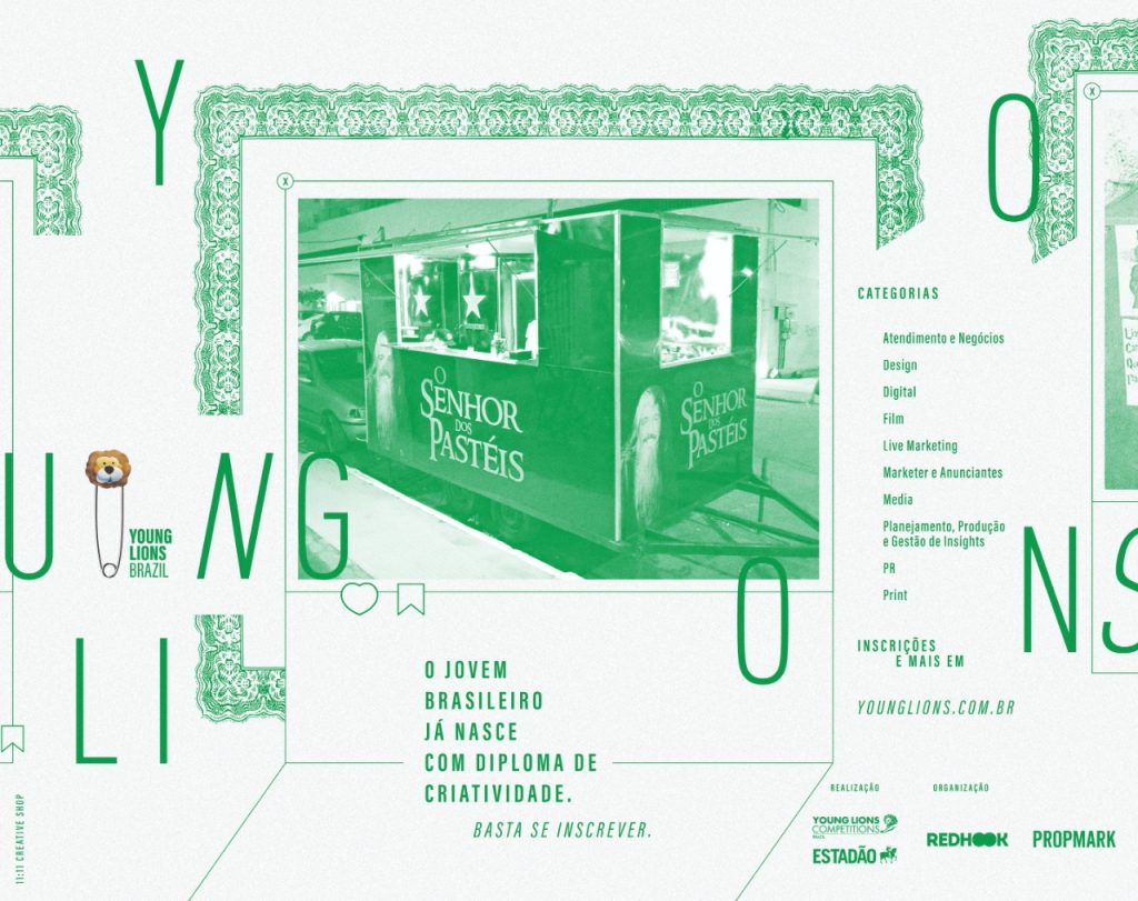 Pensando em incentivar a participação de talentos brasileiros, a organização apresentou a campanha “O jovem brasileiro já nasce com diploma de criatividade”, elaborada pela 11:11. As peças trazem exemplos do “marketing” do dia a dia que viralizaram nas redes sociais, como a barraca “O Senhor dos Pastéis”, numa clara celebração da típica criatividade brasileira.