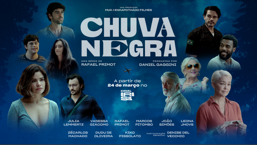 “Chuva Negra”, nova série do Canal Brasil produzida por Daniel Gaggin, estreia na grade do Canal Brasil nesta sexta-feira, 24. O elenco conta com Vanessa Giácomo, Julia Lemmertz, Marcos Pitombo, João Simões – ator com Síndrome de Down que interpreta um dos protagonistas – e Rafael Primot, que, além de atuar, dirige a trama.