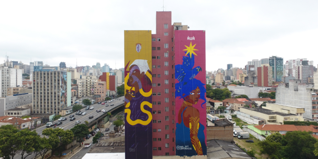 Todas as oito obras abordam a inclusão, a ancestralidade, a espiritualidade e o acolhimento, entre outros diálogos, que levam mais cor, leveza, diversidade e conexão para o olhar sob o concreto das ruas. O projeto é financiado pelo Museu de Arte de SP (MAR), da Secretaria Municipal de Cultura.