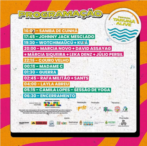 Acontece nestes sábado e domingo, 19 e 20 respectivamente, o Festival Tarumã Alive. A sétima edição do evento será realizada na Praia da Lua e promoverá ações ambientais e culturais em prol da bacia do Tarumã-Açú, considerada a maior bacia hidrográfica urbana do Amazonas.