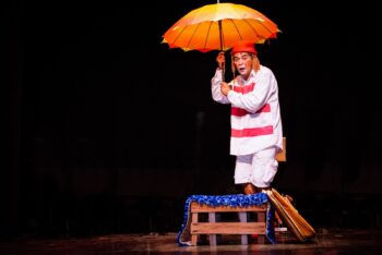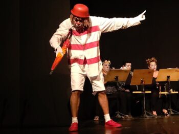 “Como recursos de interpretação, são utilizadas a pantomima e a manipulação de objetos, tais como uma sombrinha colorida, lenços e uma mala. Os outros quatro artistas criam a ambientação, fazem interferências no texto recitado pelo palhaço e criam situações de comunicação entre eles e a plateia”, pondera Verçosa.
