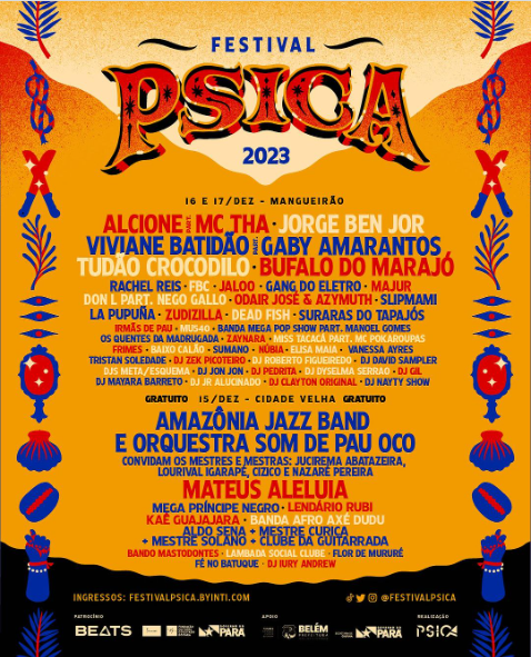 A 11ª edição do Festival Psica teve sua programação completa confirmada. O festival de música acontece de 15 a 17 de dezembro em Belém do Pará e conta com grandes nomes da música nacional como Alcione, Jorge Ben Jor, MC Tha e Gaby Amarantos.