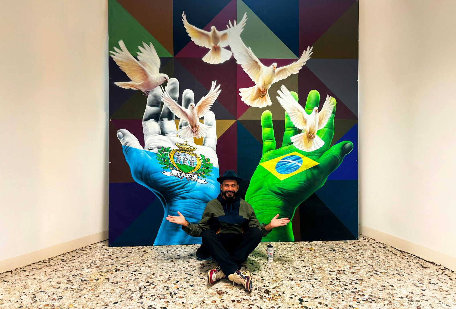 “Minha amizade com San Marino começou em 2022, quando pintei aqui um mural imenso sobre a história deste pequeno país, considerado o Estado nacional e a república mais antigos do mundo. Estou aqui de novo para um importante evento: fui convidado para expor algumas de minhas telas para celebrar os 40 anos de relações diplomáticas entre San Marino e Brasil”, destaca Kobra.