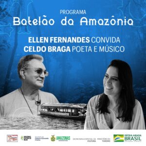 A cantora e compositora Ellen Fernandes lança nesta segunda-feira, 13, às 20h, o terceiro episódio do programa “Batelão da Amazônia”, que conta com a participação especial do poeta e músico Celdo Braga, natural do município de Benjamin Constant, no Amazonas, membro da União Brasileira de Escritores, além de autor das obras poéticas.