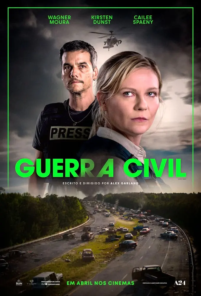 O filme “Guerra Civil” chega aos cinemas de Manaus envolvendo o público em um enredo de suspense e adrenalina. A produção é mais uma obra internacional que conta com a participação do ator brasileiro Wagner Moura (Joel), que já atuou em filmes como “Tropa de Elite”. Além dele, o filme conta também com as atuações de Kirsten Dunst (Lee), Cailee Spaeny (Jessie) e Nick Offerman (Presidente).