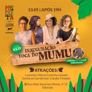 O Espaço Cultural Muiraquitã inaugura a Toca do Mumu, nesta sexta, 13, após às 19h. A Toca do Mumu fica localizada na Rua Altair Severiano Nunes, n° 13, no Eldorado.