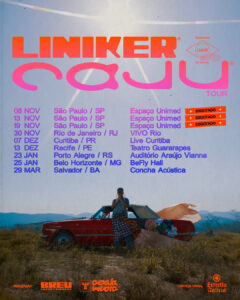 Liniker anunciou novas datas da turnê “CAJU” após esgotar os ingressos para três apresentações em São Paulo, previstas para os dias 8, 13 e 19 de novembro no Espaço Unimed. As informações sobre a venda de ingressos serão divulgadas em breve.