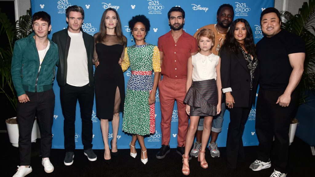 Das produções anunciadas para a nova fase, Os Eternos talvez seja a mais sintomática dessa postura. A equipe, pouco conhecida, chegará aos cinemas com um elenco bastante diverso: dos oito integrantes, três são brancos (Angelina Jolie, Richard Madden e a pequena Lia McHugh); dois são negros (Brian Tyree Henry e Lauren Ridloff); uma é latina (Salma Hayek); um é paquistanês (Kumail Nanjiani); e outro é sul-coreano (Ma Dong-Seok, também conhecido como Don Lee). Mais do que os números, é a imagem de todos reunidos que revela o ineditismo da produção, ainda mais considerando os padrões da indústria.