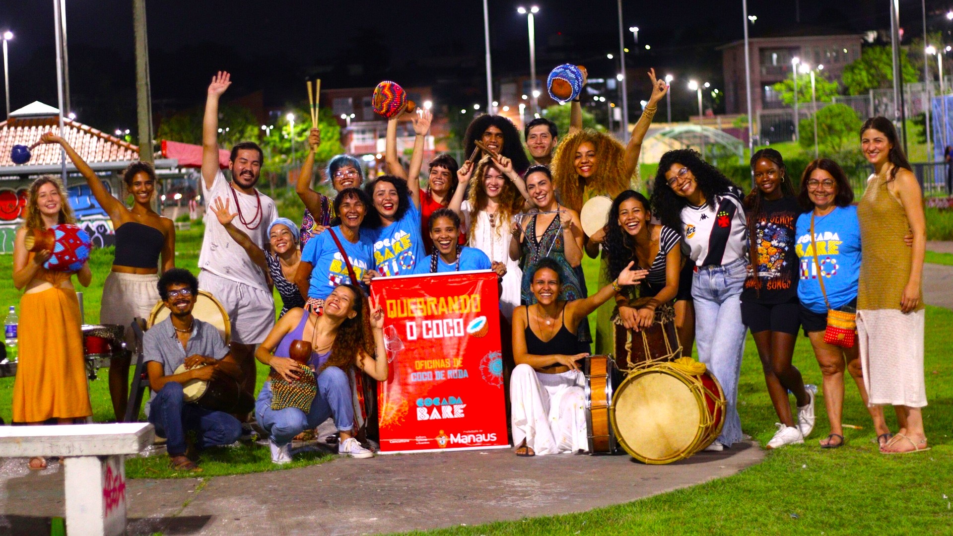 Produzido pela Caldo Negro Produções, o projeto Quebrando o Coco realiza a segunda edição do ciclo de oficinas gratuitas de coco de roda com o apoio do edital 04/2023 da Lei Paulo Gustavo, da Secretaria de Cultura e Economia Criativa do Amazonas. O objetivo principal é desenvolver a aprendizagem do ritmo musical e da dança do coco de roda por meio das oficinas gratuitas destinadas a jovens e adultos.