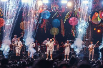 Formada por Fred Zero Quatro (voz, cavaco, violão e guitarra), Xef Tony (bateria e voz), Leo D (teclado), Pedro Diniz (baixo) e Pedro Santana (percussão), a Mundo Livre S/A está na estrada com o show comemorativo desde o segundo semestre de 2024. A banda revisita as 13 faixas de “Samba Esquema Noise”, entre os sucessos estão “A Bola do Jogo”, “Musa da Ilha Grande”, “Livre Iniciativa” e “Rios, Pontes & Overdrives”, mas os pernambucanos também fazem uma viagem por toda a sua discografia.