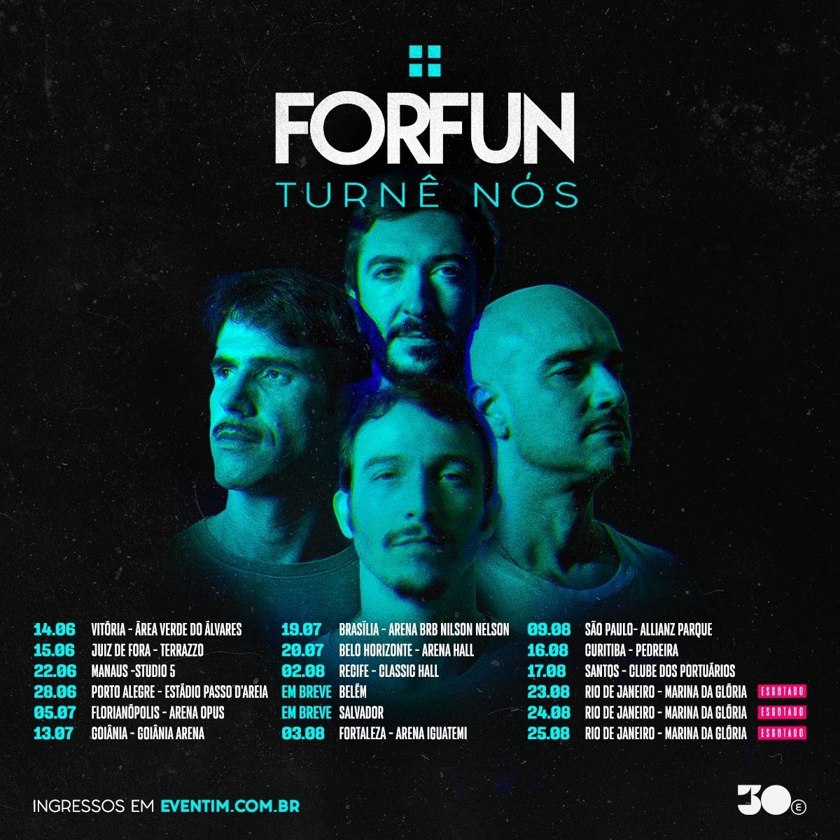 Assim que anunciou o retorno aos palcos, o Forfun divulgou datas de shows em São Paulo e no Rio de Janeiro – ambas concorridas pelos fãs (só na capital fluminense, 40.000 ingressos esgotaram de prontidão).