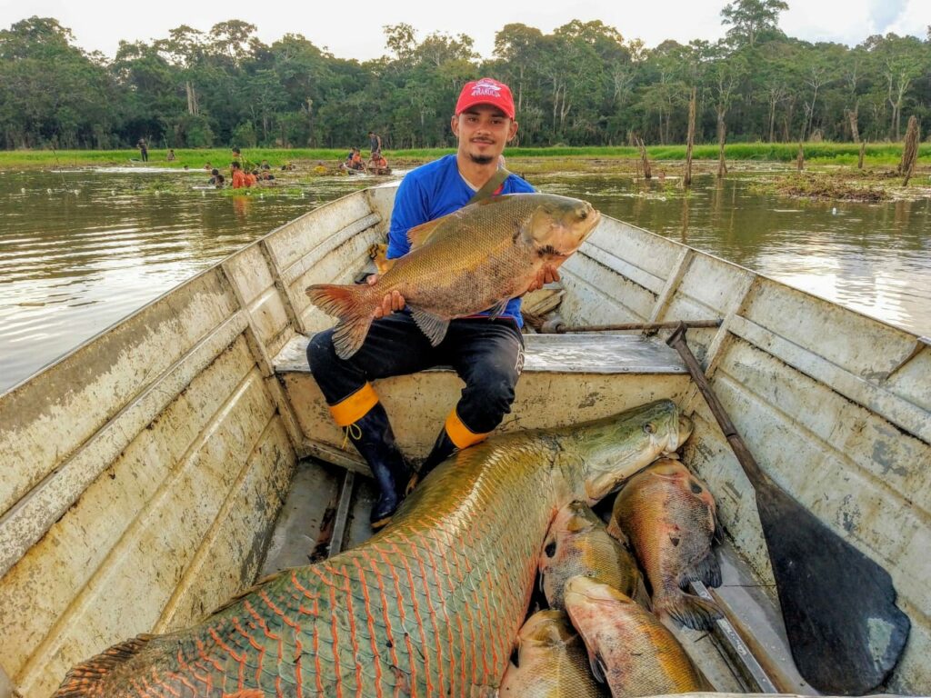 Morador da comunidade de Tabuleiro, na Reserva de Desenvolvimento Sustentável (RDS) Uacari, no Território do Médio Juruá, município de Carauari, o jovem Jean Silva se interessou pela vaga e foi um dos selecionados. Ele conta que participou desde o início do processo de contagem dos peixes, nos rios e lagos, até chegar a captura, quando é colocado um lacre do Ibama para identificar o animal e suas características como peso, sexo, comprimento, horário de abate, entre outras informações. Em seguida, vem a etapa de evisceração (retirada das vísceras) e o pescado segue para câmaras frigoríficas até o município de Carauari – onde, ao ser beneficiado e embalado, o produto recebe um QR Code que direciona o consumidor a uma página informativa sobre o manejo e a origem. A capacitação profissional e a remuneração são destacadas pelo jovem como os grandes chamarizes do projeto.