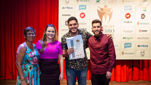 Troféu Nossa História: José dos Santos Azevedo, fundador e presidente do Grupo TV Lar, José Joaquim Martins Marinho, radialista e incentivador cultural, Adair Vaz Barroso, presidente da Ceprodonto, e Paulo Aguiar, representante do Movimento Pedala Manaus