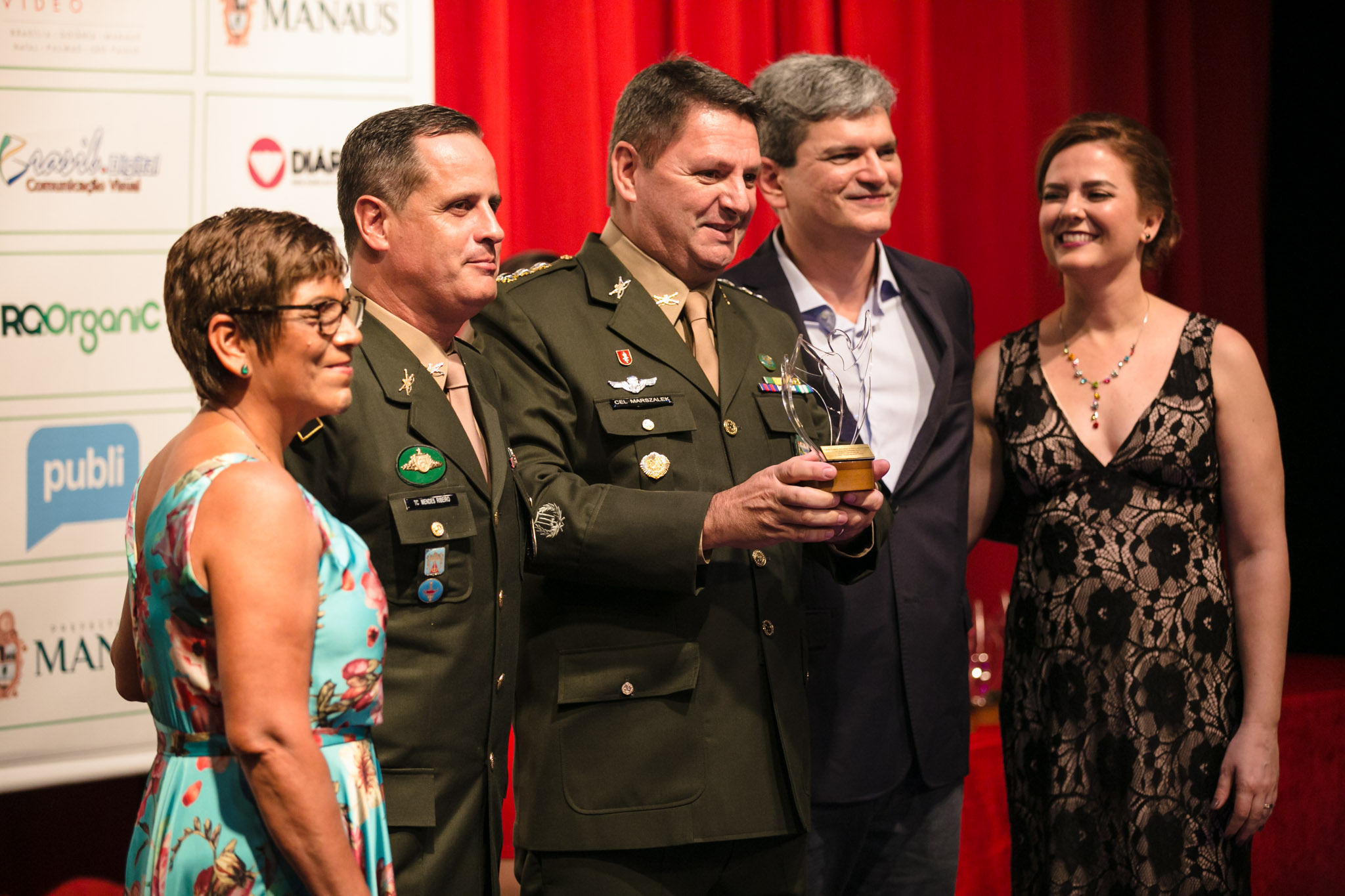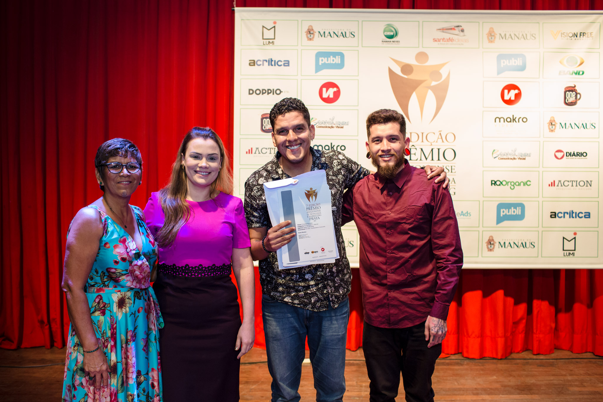 Troféu Nossa História: José dos Santos Azevedo, fundador e presidente do Grupo TV Lar, José Joaquim Martins Marinho, radialista e incentivador cultural, Adair Vaz Barroso, presidente da Ceprodonto, e Paulo Aguiar, representante do Movimento Pedala Manaus