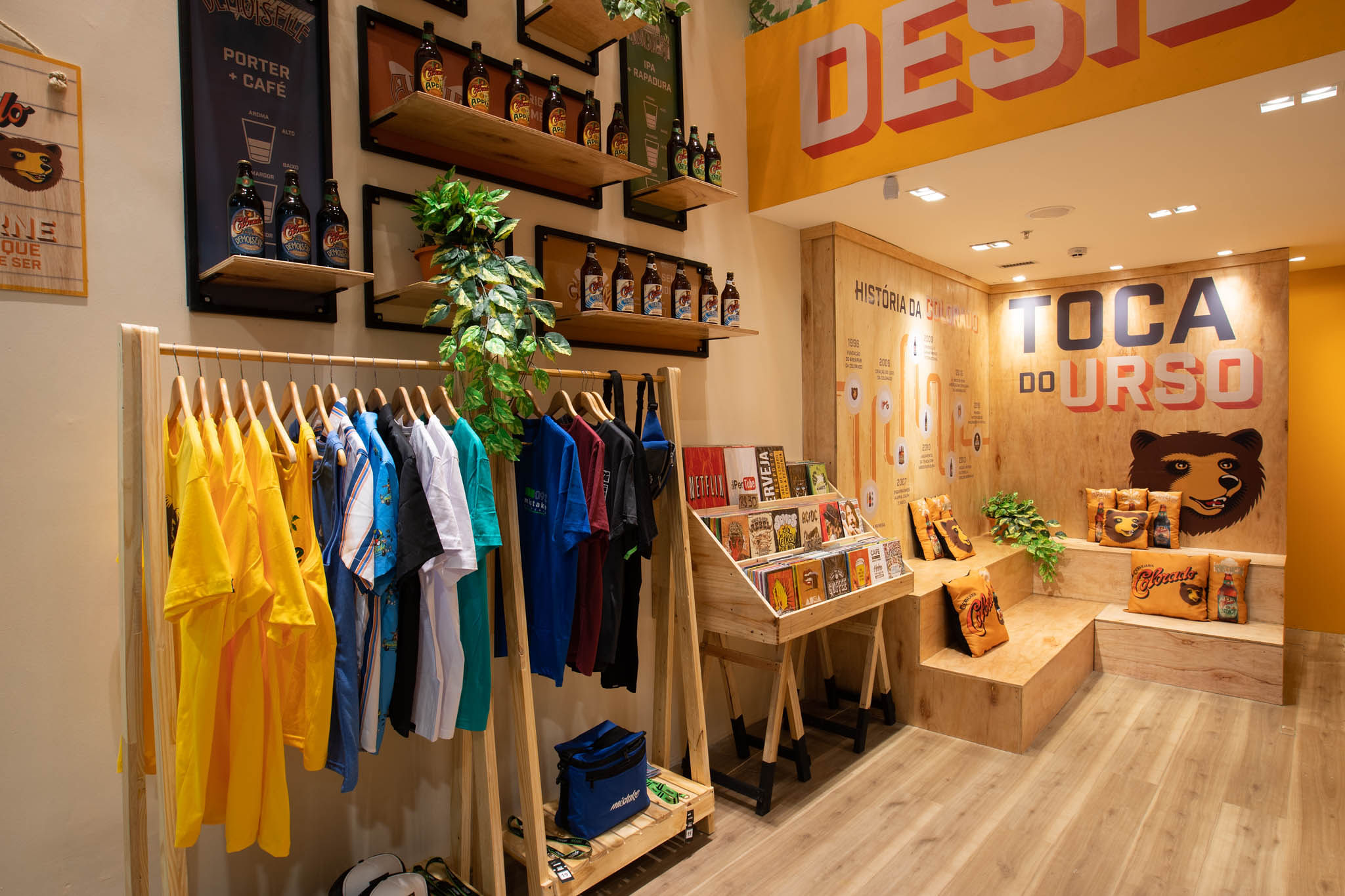 O grande desafio da equipe de criação era planejar e desenvolver um espaço aconchegante e que fosse a cara da marca. Para representar toda brasilidade que a Colorado exala, como nos rótulos das cervejas da marca, a equipe optou por se inspirar no próprio manual de marca e abusar das cores vibrantes na loja conceito.