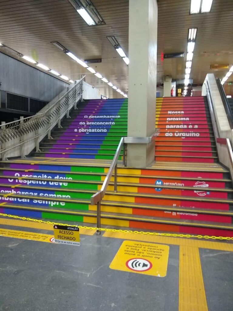 MetrôRio colore escada da estação Central para celebrar o Dia do Orgulho LGBTQIA+