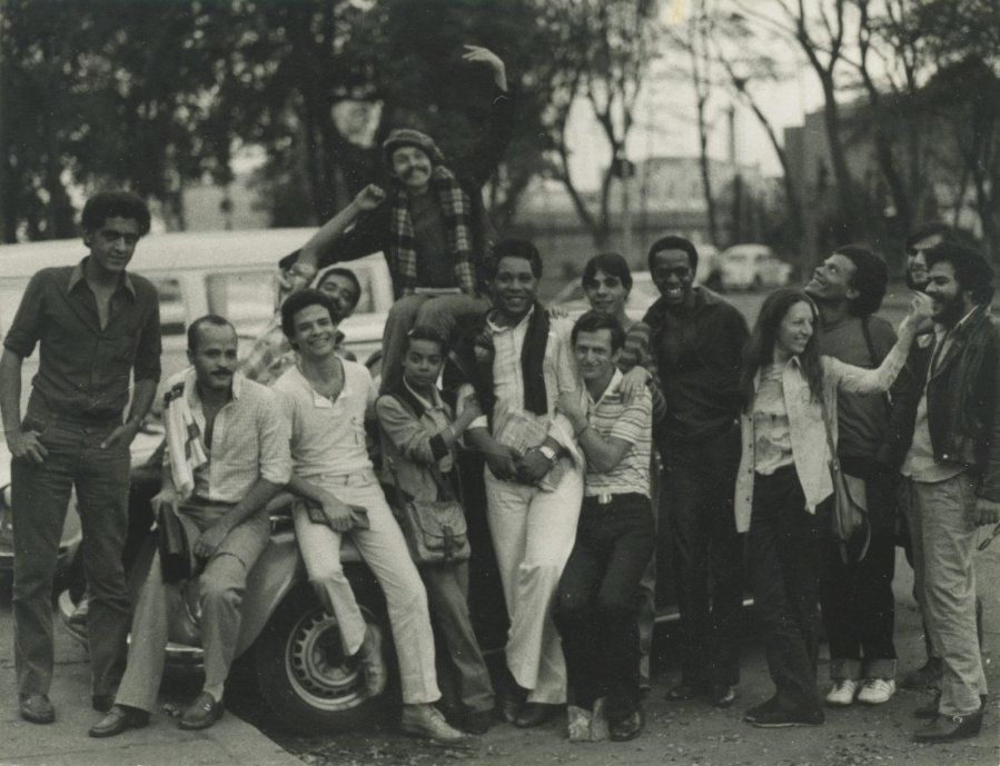 Membros do Somos – Grupo de Afirmação Homossexual depois de uma reunião geral nas Ciências Sociais da USP, 1980 (Foto: Reprodução/Internet)