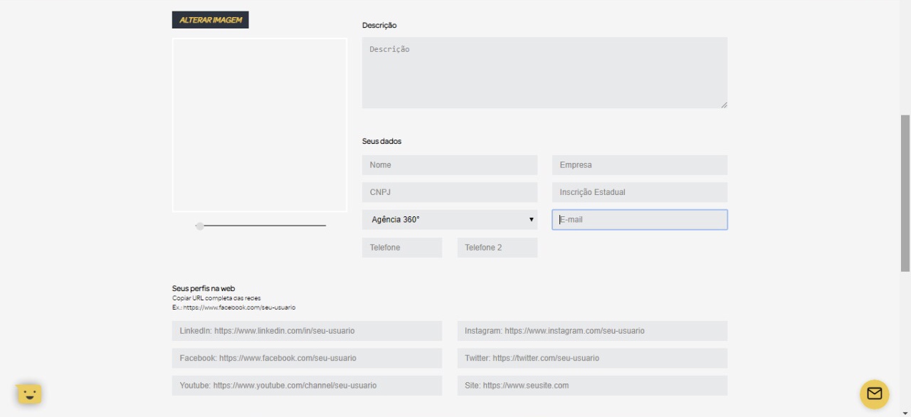 3º Passo: Este é o momento de você desenvolver o perfil da sua empresa. Adicione uma imagem de capa e uma de perfil. Insira uma descrição e outros dados como perfis na web, CNPJ e endereço. Também não esqueça de fazer o upload do portfólio. Por último, clique em “Atualizar dados” e seu cadastro está feito.