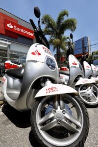 Na última terça-feira, 25, dia do aniversário de São Paulo, o banco Santander anunciou incentivo a um projeto de compartilhamento de motos elétricas em parceria com o aplicativo Riba Motos. Segundo informações da Veja, 50 scooters elétricas estão disponíveis para aluguel em bairros da zona sul da capital.