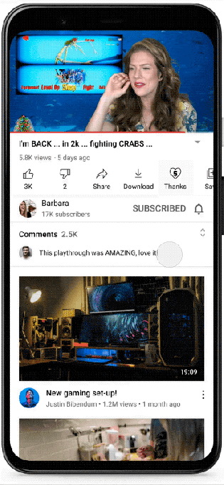 Com o Super Thanks, “Super Obrigado” na tradução literal para português, fãs e admiradores poderão contribuir com valores entre 2 e 50 dólares, que serão adaptados à moeda brasileira. Em contrapartida, o usuário que contribuir com determinada quantia terá seu comentário em destaque no vídeo.