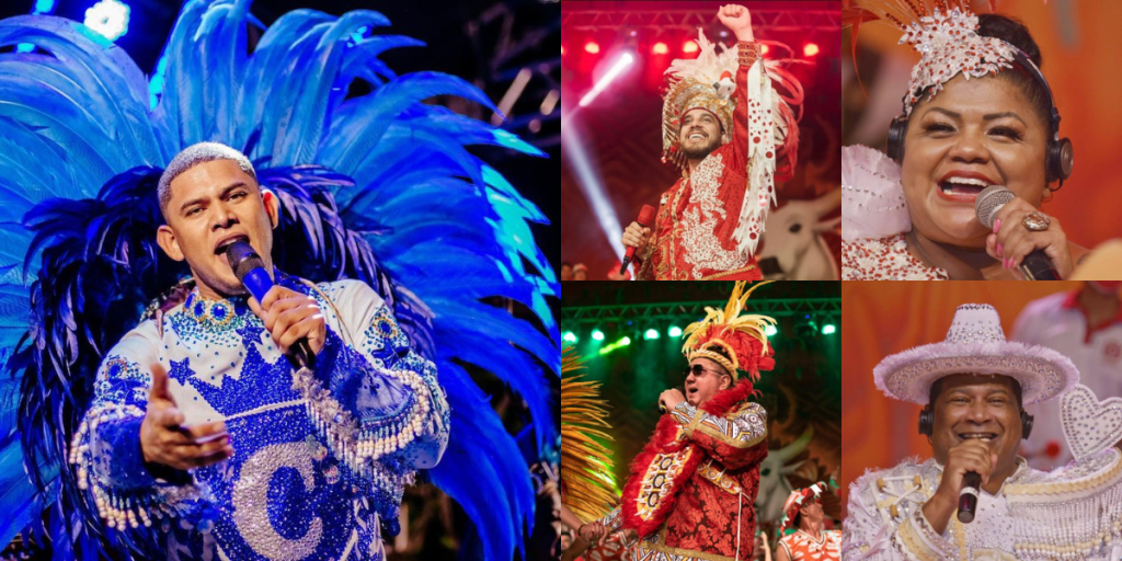 Patrick Araújo é o levantador de toadas do Caprichoso e Sebastião Júnior, Márcia Siqueira, David Assayag e Edilson Santana são do Garantido.