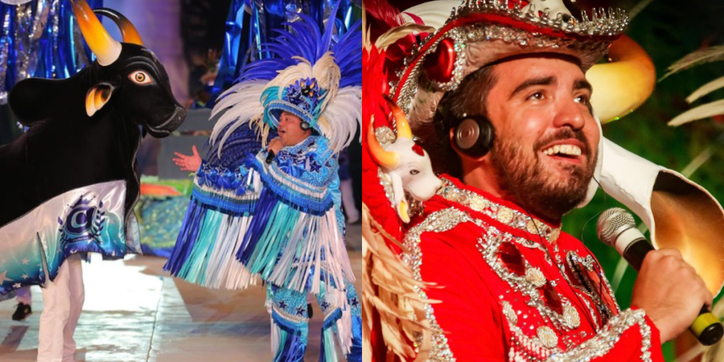 O amo do boi do Caprichoso é Herland de Souza, conhecido como Prince do Caprichoso, e do Garantido, João Paulo Faria.