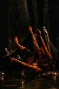 O espetáculo consiste em uma performance de circo contemporâneo, que revela a relação do corpo com o espaço através de equilíbrios, contorções, manipulação de objetos e acrobacias de solo e aéreas, em formato de espetáculo de rua.